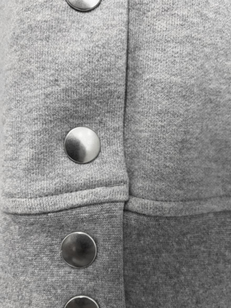 上質で肌触りの良いコットン素材を使用。共布のパイピングで形作られたコクーン袖やバックスタイルのドットボタンで程よくモードな印象のスウェットトップス。